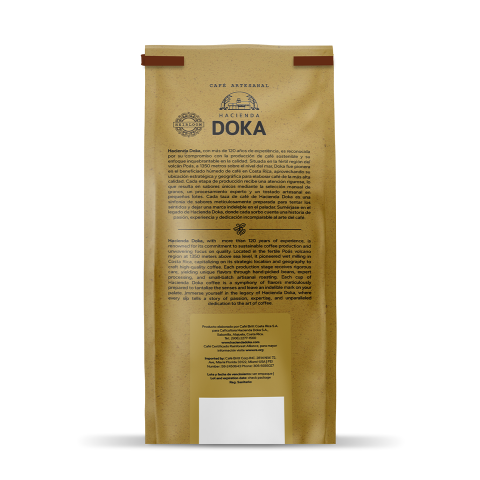 En cada grano de Café Hacienda Doka Breakfast Blend, hay una historia de dedicación y pasión por el cultivo del café. Esta mezcla es el resultado de nuestro compromiso de mantener los más altos estándares en cada paso de nuestro proceso, desde el cuidadoso cultivo de las cerezas de café hasta el meticuloso arte del tostado.