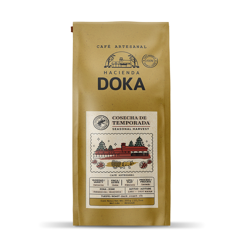 Disfrute de la edición especial Cosecha de Temporada de Hacienda Doka, un café artesanal elaborado con los mejores granos de nuestro lote “Fábrica”. Cultivado en las fértiles faldas del volcán Poás, este café de altura combina la tradición, la calidad y la pasión que caracterizan a nuestra Hacienda.